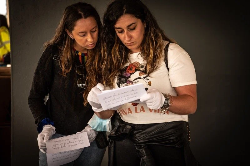 L’azione prende forma nello scambio epistolare tra 35 autori invitati (artisti, educatori, economisti, operatori sociali, ecc.), gli abitanti di 26 comunità residenziali (residenze sociosanitarie, case e comunità protette, ecc.) e gli studenti di 9 istituti scolastici.