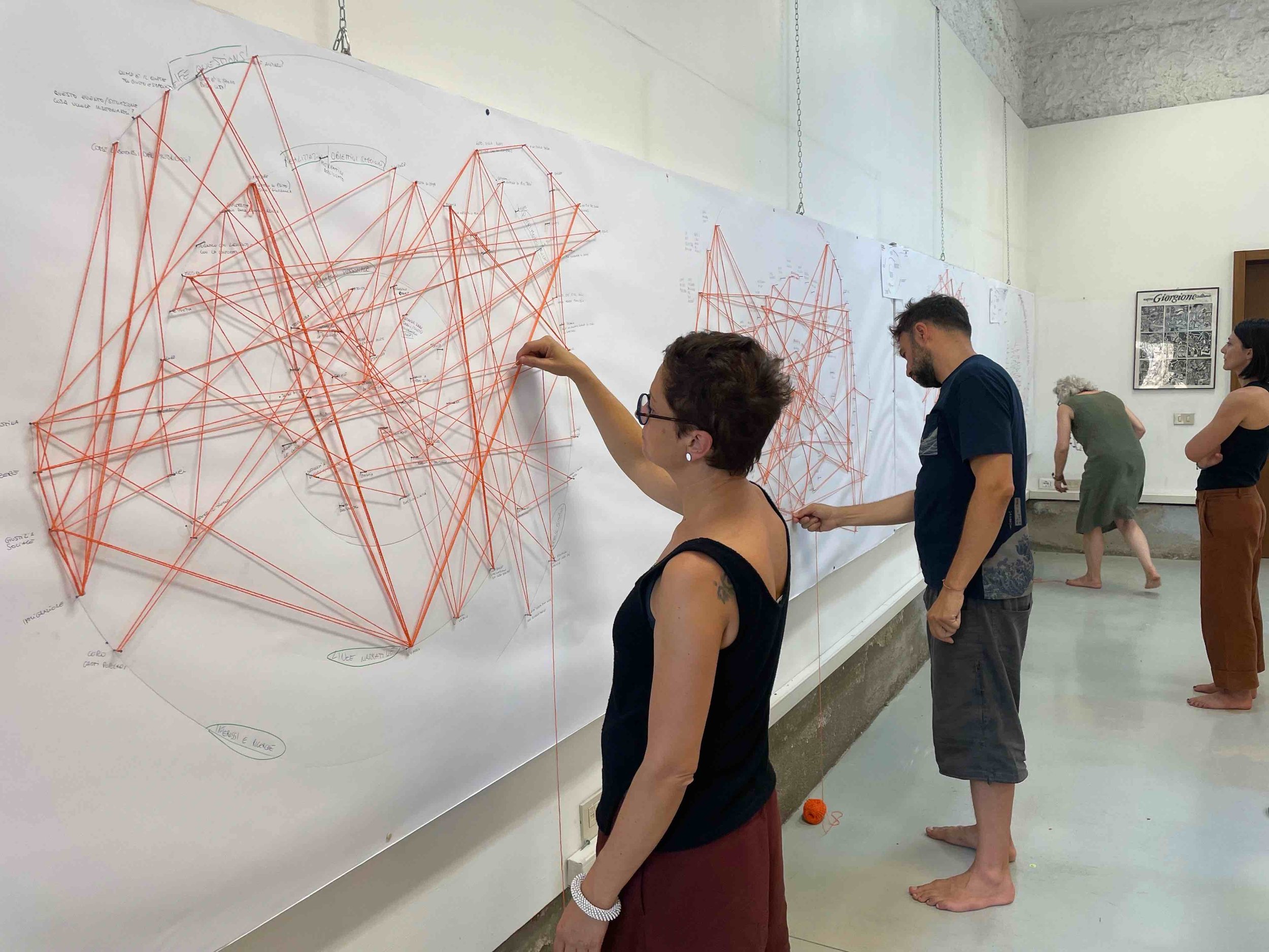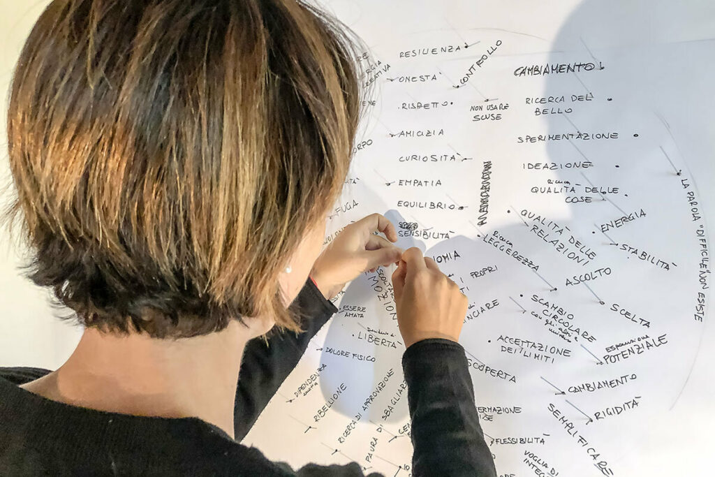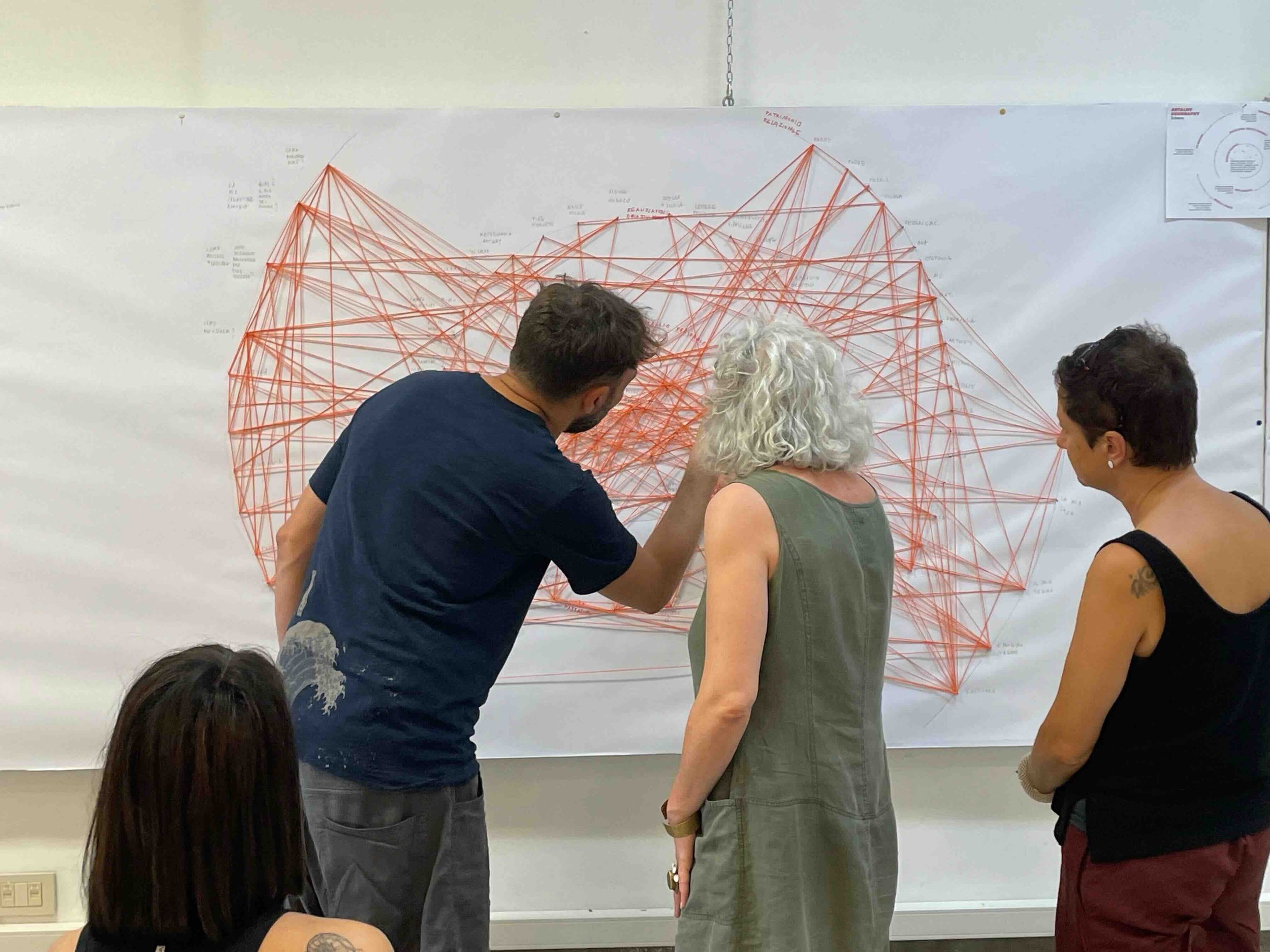 Art&Life Geography è un’esperienza di creazione della mappa del proprio cammino: offre la possibilità di segnare e mettere a sistema i principali elementi ed eventi della vita. Partendo da alcune domande e da alcuni cluster, a cui si da risposta in maniera spontanea e istintiva, con una matassa di filo si creano collegamenti tra fatti, persone, idee, sentimenti… e mentre emergono relazioni fino allora inconsce o dimenticate, alcuni punti prendono densità, altri perdono importanza: nasce una nuova consapevolezza e nuove visioni sul proprio divenire.